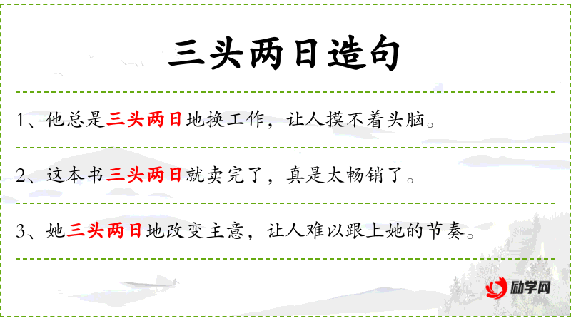 - 文化意义:“三头两日”这个成语体现了**文化中对时间描述的独特方式,强调时间的短暂和迅速。