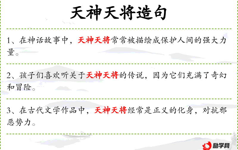 - 同义表达:在艺术作品中,天神天将的形象往往显得宏伟而庄重。
