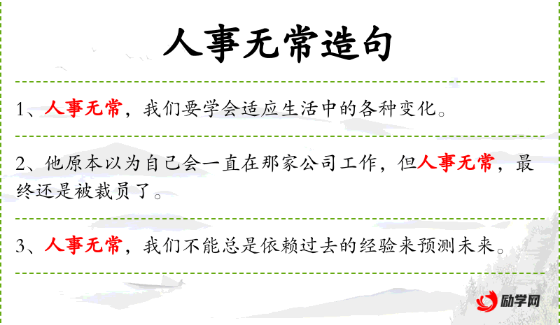 - 人事无常:指人的关系和情况变化无常,不可预测。