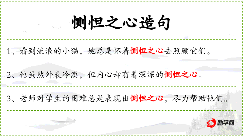 - 恻怛之心:成语,形容内心深处的同情和怜悯。 *. 去照顾:动词短语,表示采取行动进行关怀和照料。