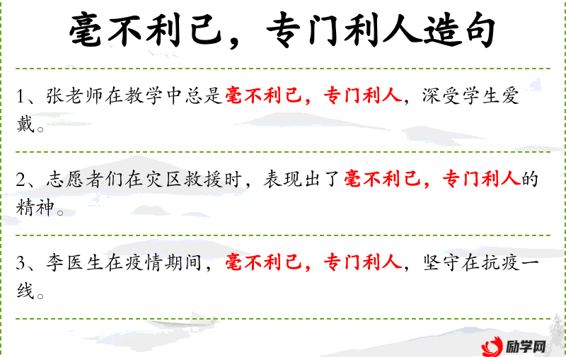 6. 【毫不利己】 - 一点也不为自己。