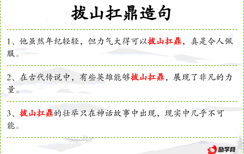 - 不同句式:“古代传说中的某些英雄,以其拔山扛鼎的能力,彰显了非凡的力量。”