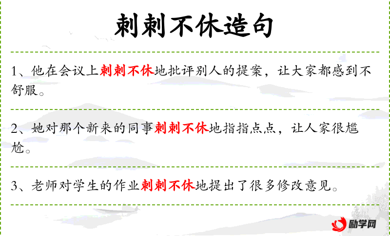 - 刺刺不休:喋喋不休、滔滔不绝