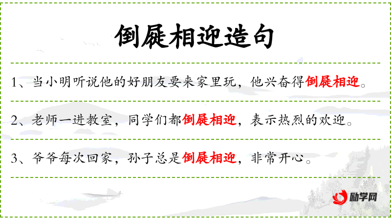 - 学生们对即将离别的老师倒屣相迎,以表达他们深深的感激。