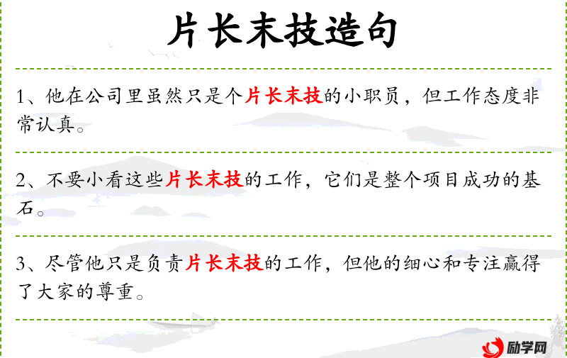 3. 【片长末技】 微小的特长,浅薄的技能。同“片长薄技”。