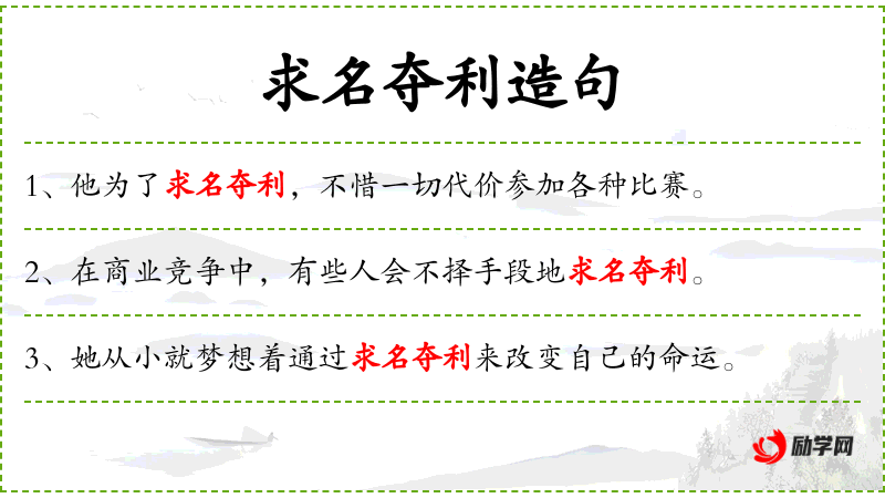 5. 【求名夺利】 指追求名誉,争夺财利。
