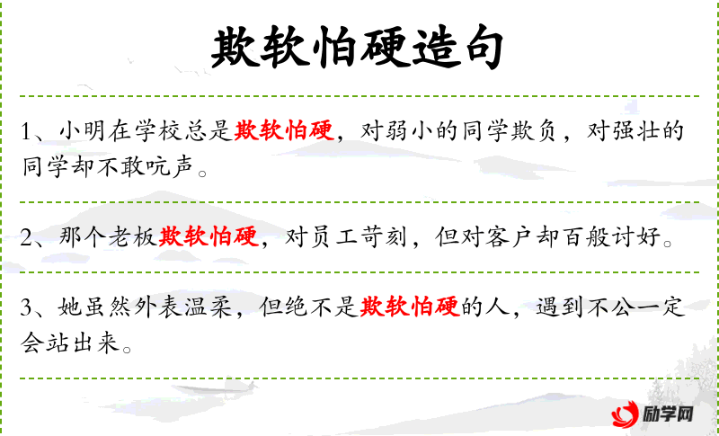 1. 【欺软怕硬】 - 欺负软弱的,害怕强硬的。