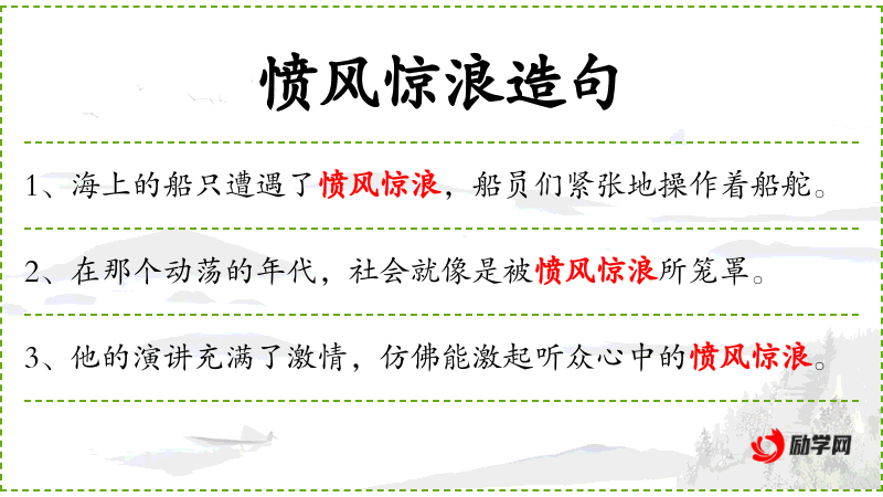 - 愤风惊浪:这个成语源自**古代文学,形容环境或情境非常动荡不安。