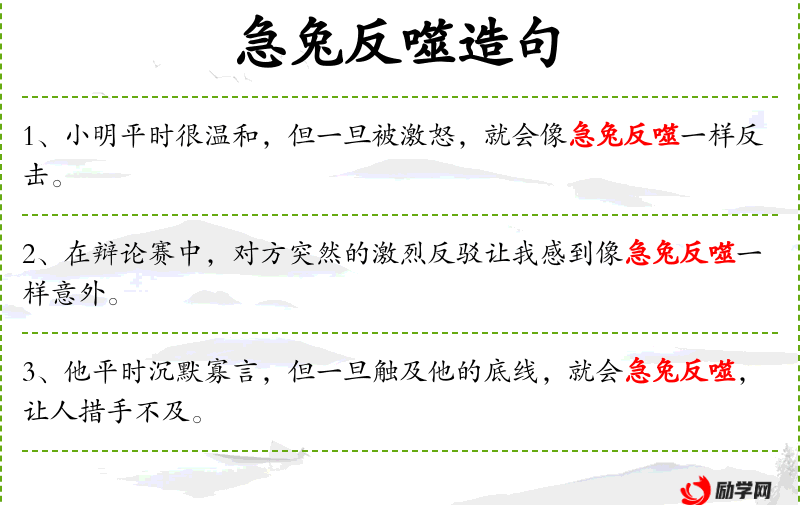 - 成语典故:这个成语可能与“兔子急了也会咬人”有关,强调即使在弱势情况下,也有反击的可能。