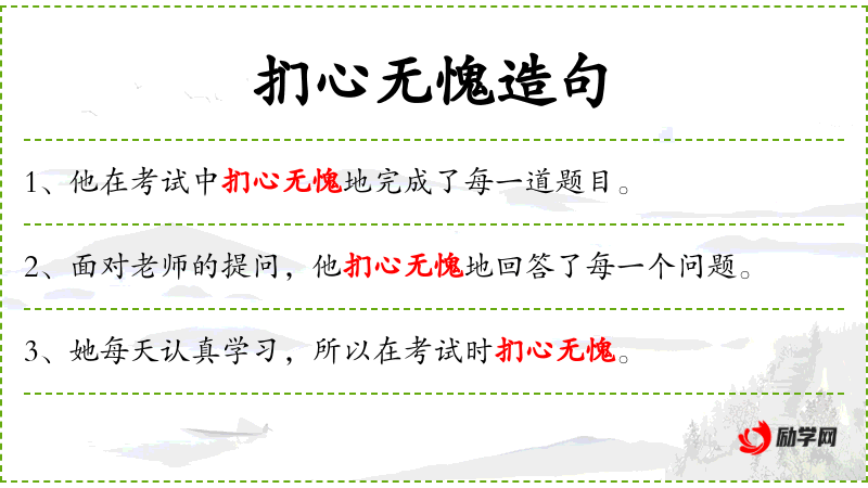 - 状语:问心无愧地