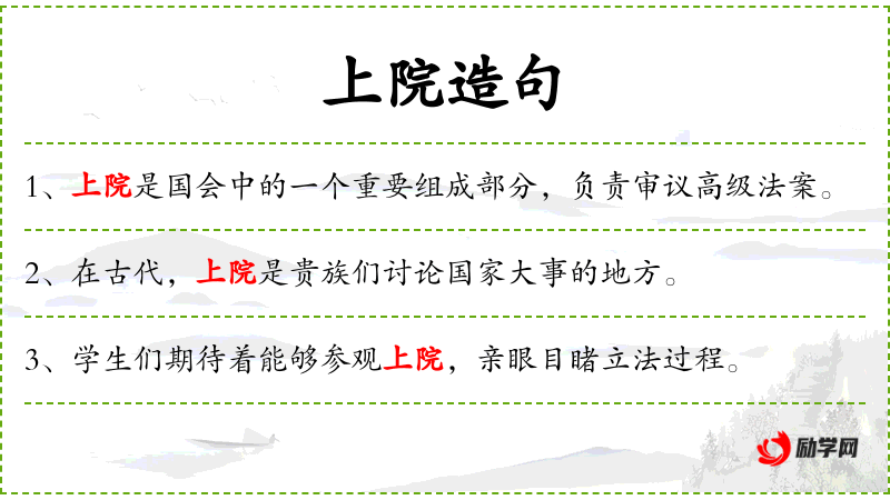 1. 【上院】 对寺院的敬称; 上议院的简称; 相当于大学。