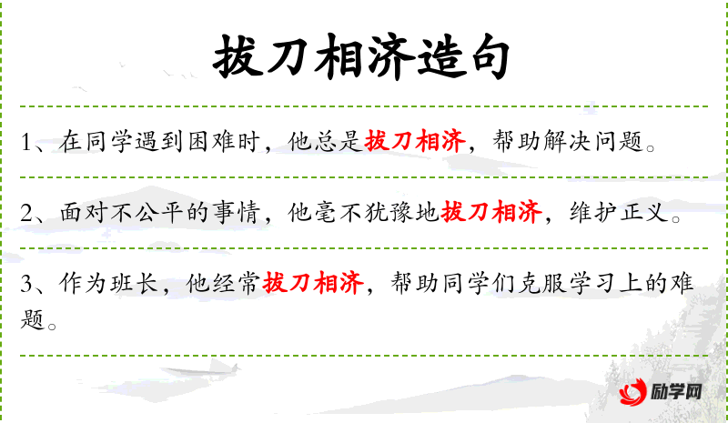 - 拔刀相济:原意是拔出刀来帮助别人,这里比喻提供实际帮助。