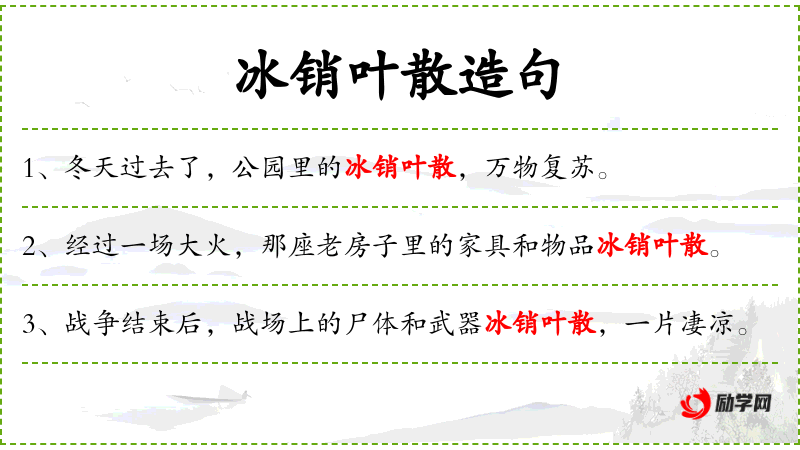 1. 【冰销叶散】 比喻事物消失瓦解。