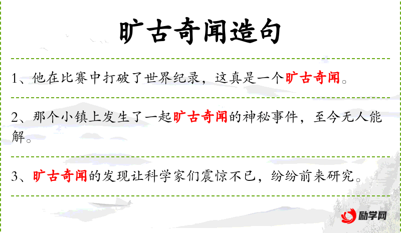 - 旷古奇闻:指自古以来罕见的奇异**或故事。