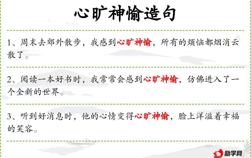 - 心旷神愉:心满意足、心情舒畅