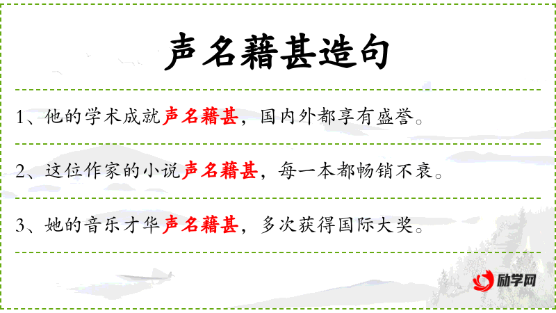 - 谓语:“声名藉甚”和“享有盛誉”