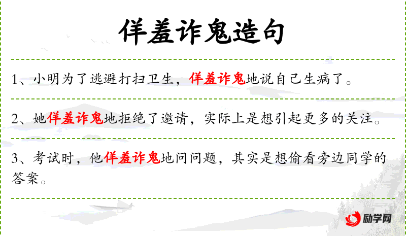 - 佯羞诈鬼:假装害羞和狡猾,形容人表面上装作害羞或狡猾的样子。