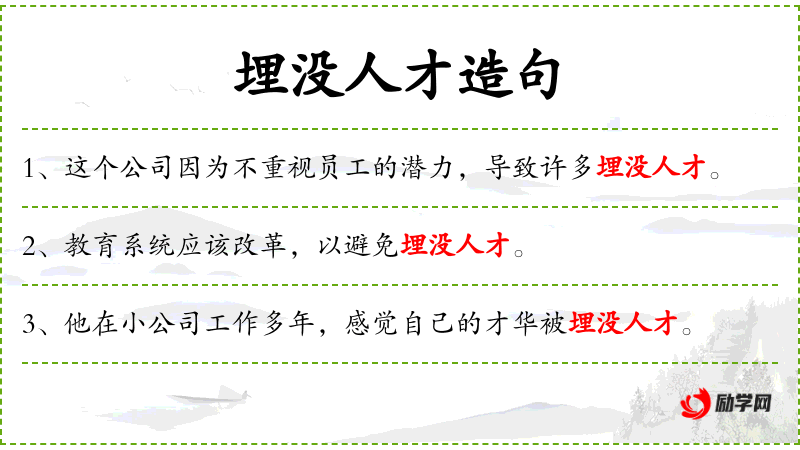 - 埋没人才:指有才能的人没有得到应有的机会或认可。