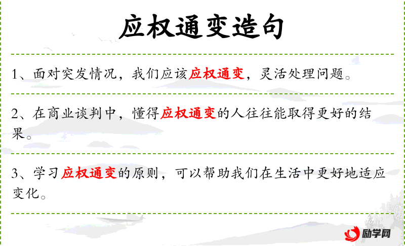 - 应权通变:意指根据实际情况灵活应对,适应变化。