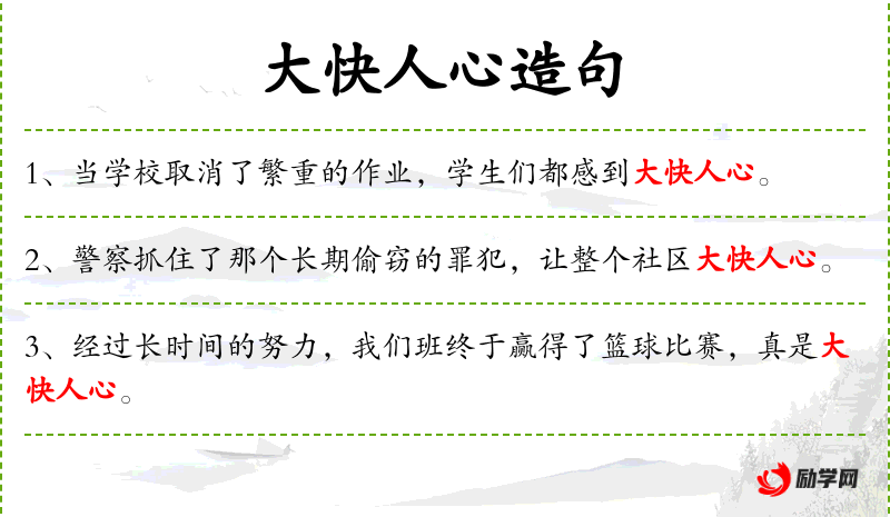 - 大快人心:成语,表示让人感到非常高兴和满意。