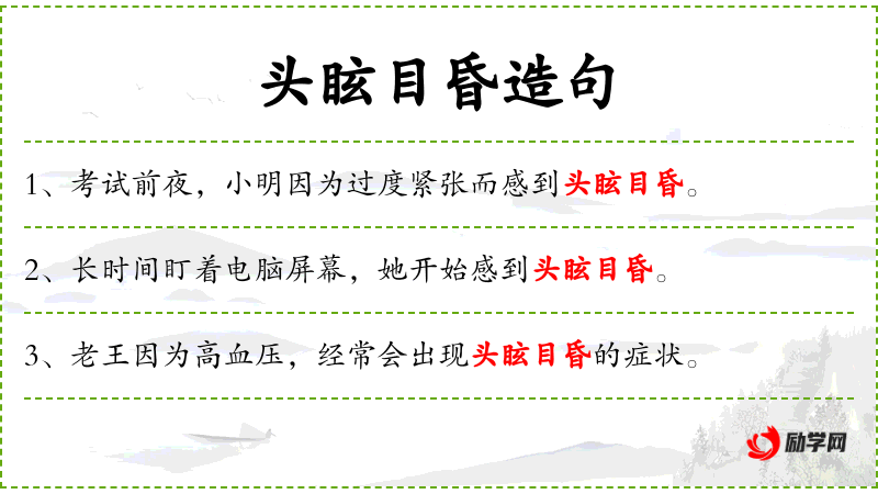 - 宾语:“头眩目昏”