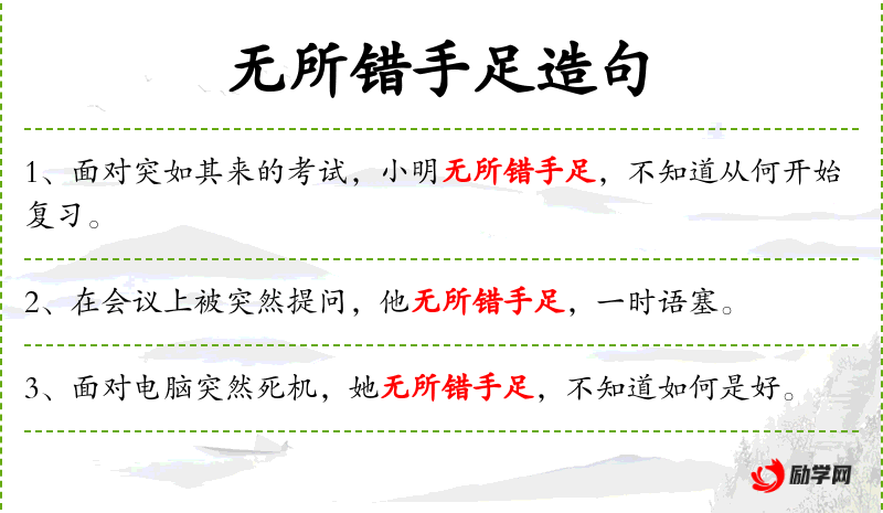 - 成语、典故:无所错手足类似于成语“手足无措”,都形容人在紧急情况下不知如何是好。