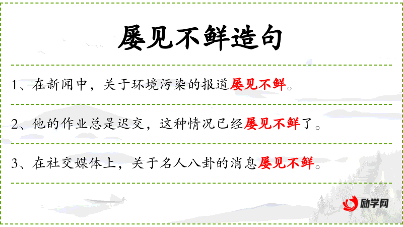 - 屡见不鲜:成语,表示经常发生,不稀奇。