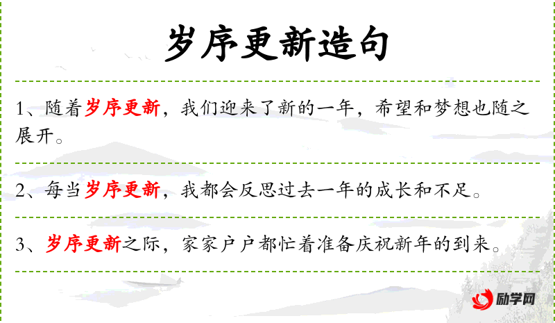 - 岁序更新:指时间的推移,新的一年的开始。