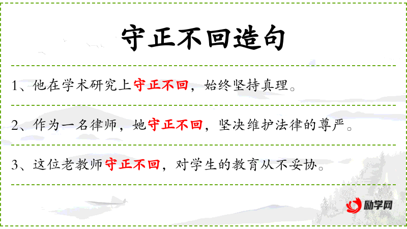 句子:“这位科学家守正不回,对科研数据的真实性从不妥协。”
