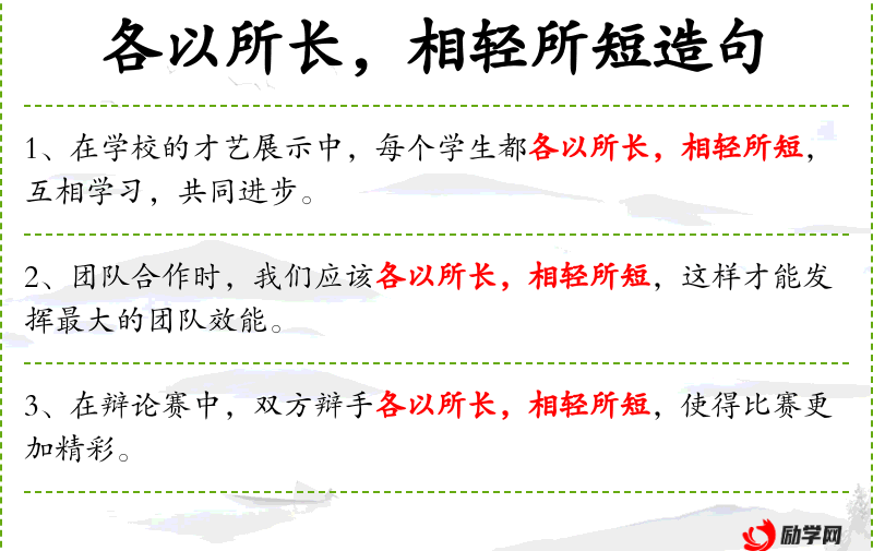 句子中“各以所长,相轻所短”体现了**传统文化中的“扬长避短”思想,强调发挥个人优势,同时包容和尊重他人的不足。这种思想在团队合作和人际交往中具有重要意义。