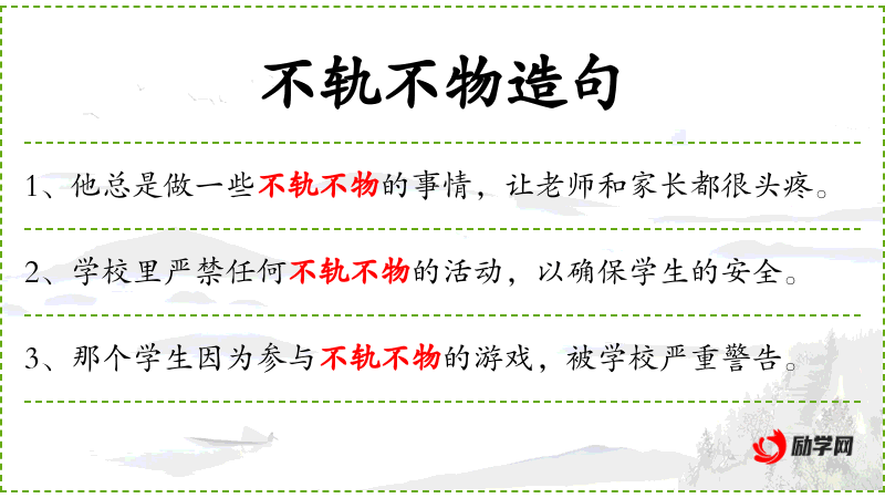 - 不轨不物:形容词,指不正当或不合适的行为。