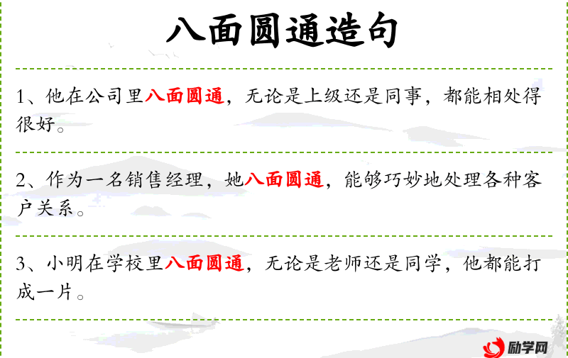 - 八面圆通:这个成语源自**传统文化,强调人在社会交往中的圆滑和周到。