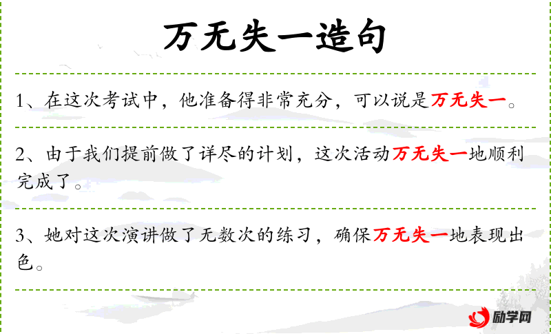 1. 【万无失一】 失:差错。指非常有把握,绝对不会出差错。
