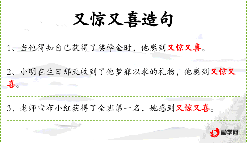 - 又惊又喜:同时感到惊讶和高兴。