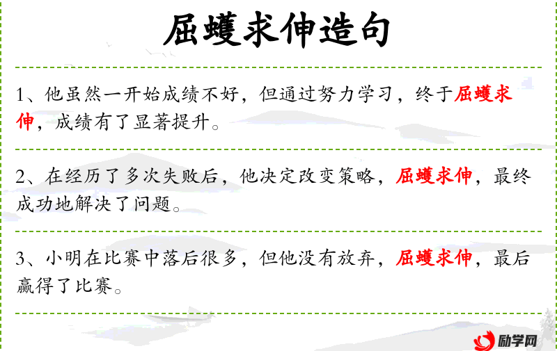 - 屈蠖求伸:这个成语源自《左传·宣公十五年》,比喻在困境中努力寻求突破。在**文化中,这个成语常用来鼓励人们在逆境中不放弃,努力寻找出路。