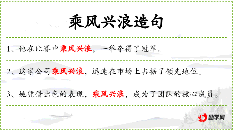 - 文化背景:在**文化中,“乘风兴浪”和“脱颖而出”都是积极向上的成语,强调抓住机遇和展现才能。