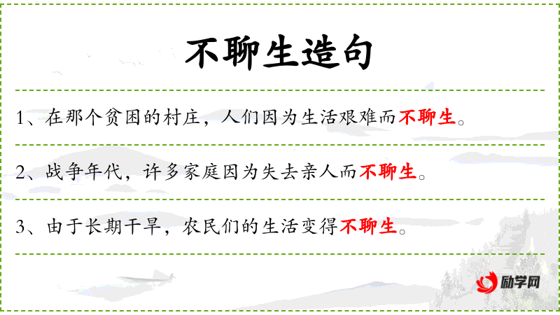 1. 【不聊生】 无法赖以生存。