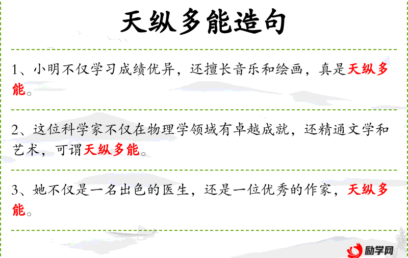 - 天纵多能:成语,表示天赋极高,多才多艺。