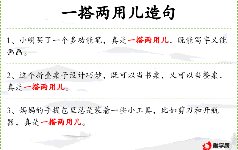 1. 【一搭两用】 - 一样东西当两样用。