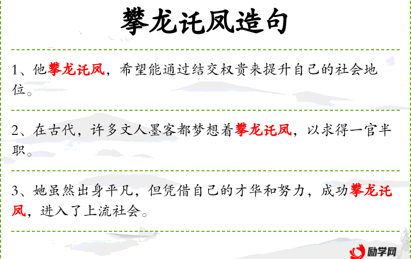 - 宾语:攀龙託凤、通过自己的努力可以获得成功