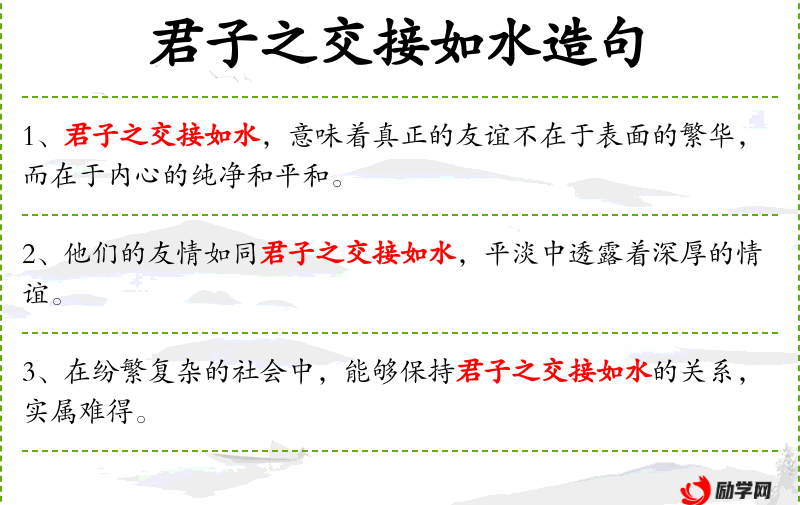 君子之交接如水,这句话提醒我们在人际交往中要保持纯净和谦逊。