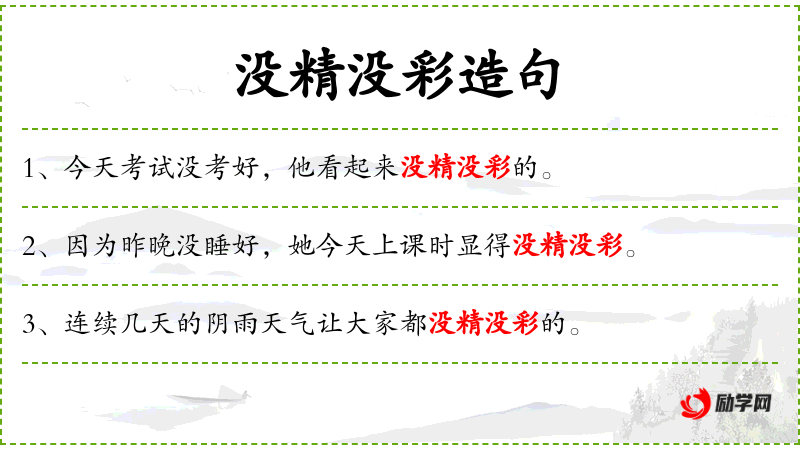 4. 【没精没彩】 - 犹没精打彩。形容精神不振,情绪低落。