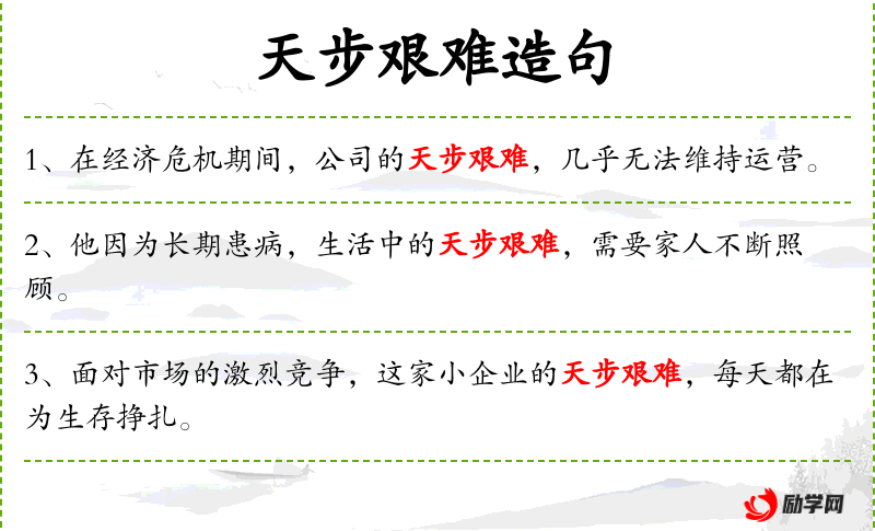 - 天步艰难:比喻生活困难,步履维艰。