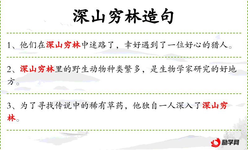 2. 【深山穷林】 与山外、林外距离远的、人迹罕至的山岭、森林。