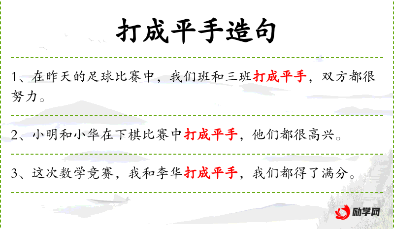 - 宾语:无明确宾语,但“打成平手”是一个动补结构