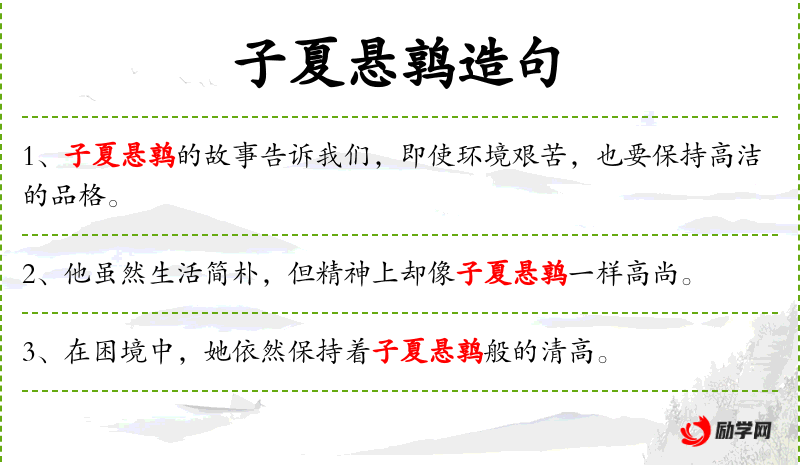 - 子夏悬鹑:这是一个成语,源自《左传·宣公十五年》,讲述子夏(孔子弟子)在贫困中依然保持高尚的志向。