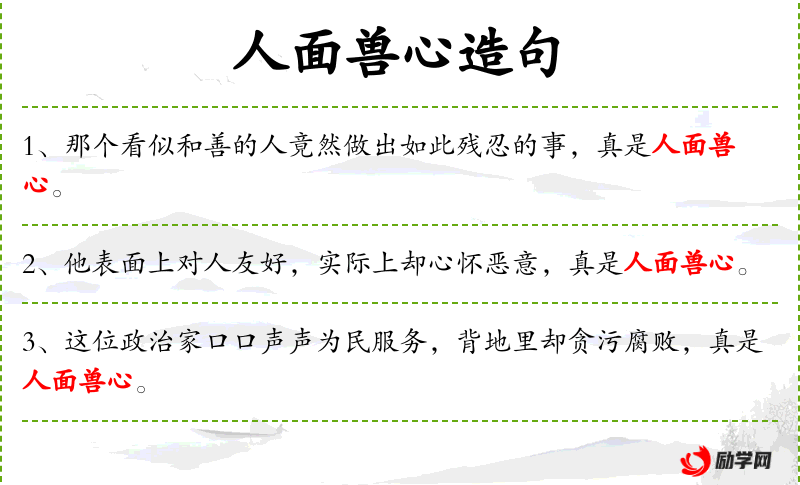 - 宾语:人面兽心