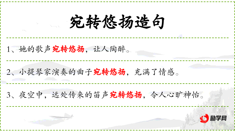 - 宛转悠扬:形容声音或言辞优美、动听,有节奏感。