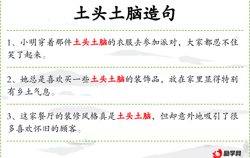 - 土头土脑:形容词,形容衣物土气、不合时宜。