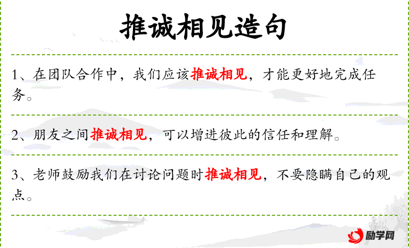 - 推诚相见:指以真诚的态度与他人交流。
